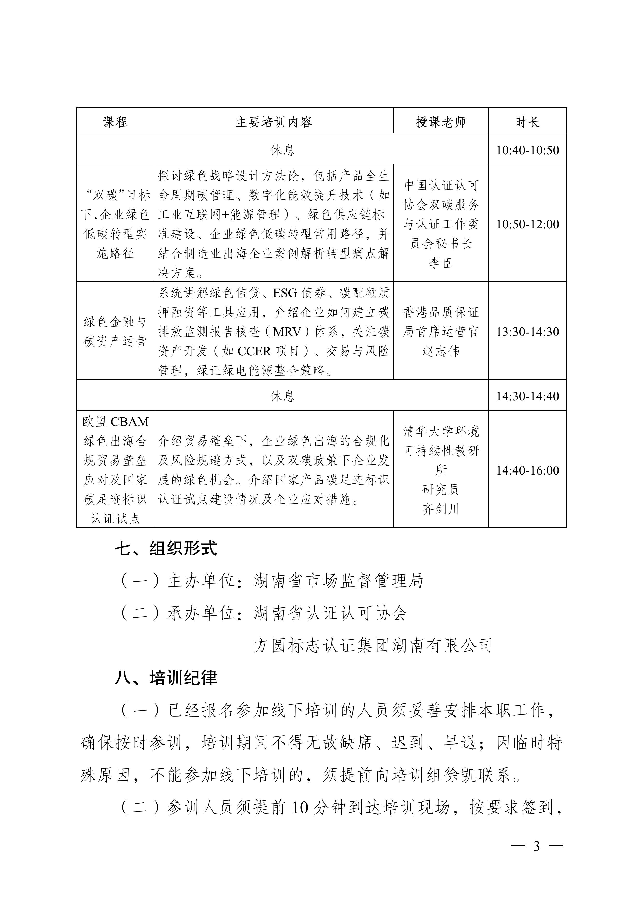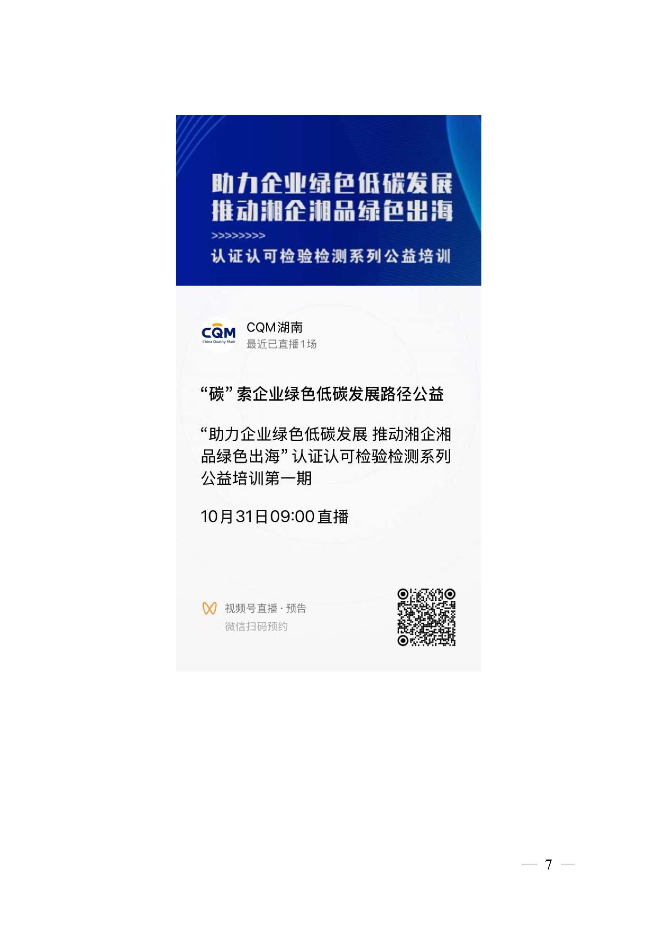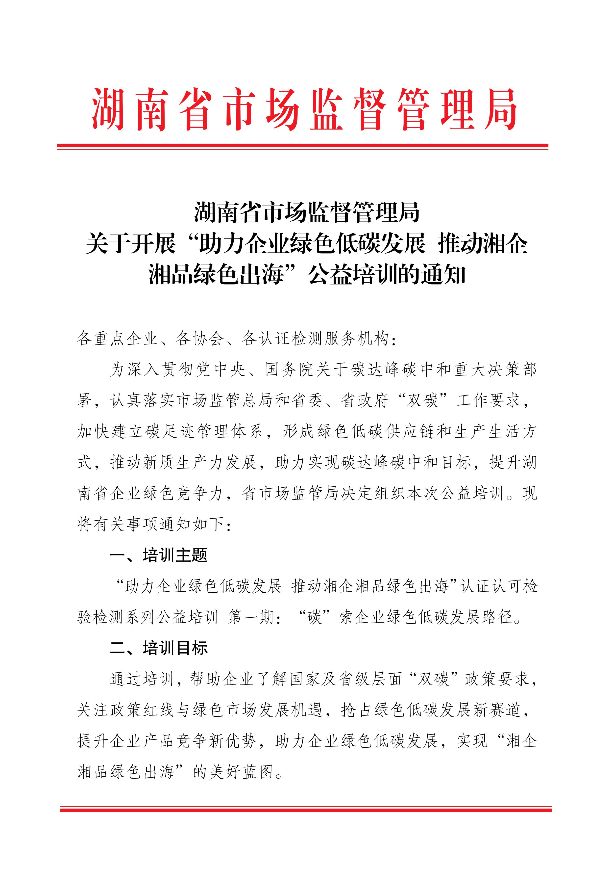 湖南省市场监督管理局 关于开展“助力企业绿色低碳发展 推动湘企 湘品绿色出海”公益培训的通知
