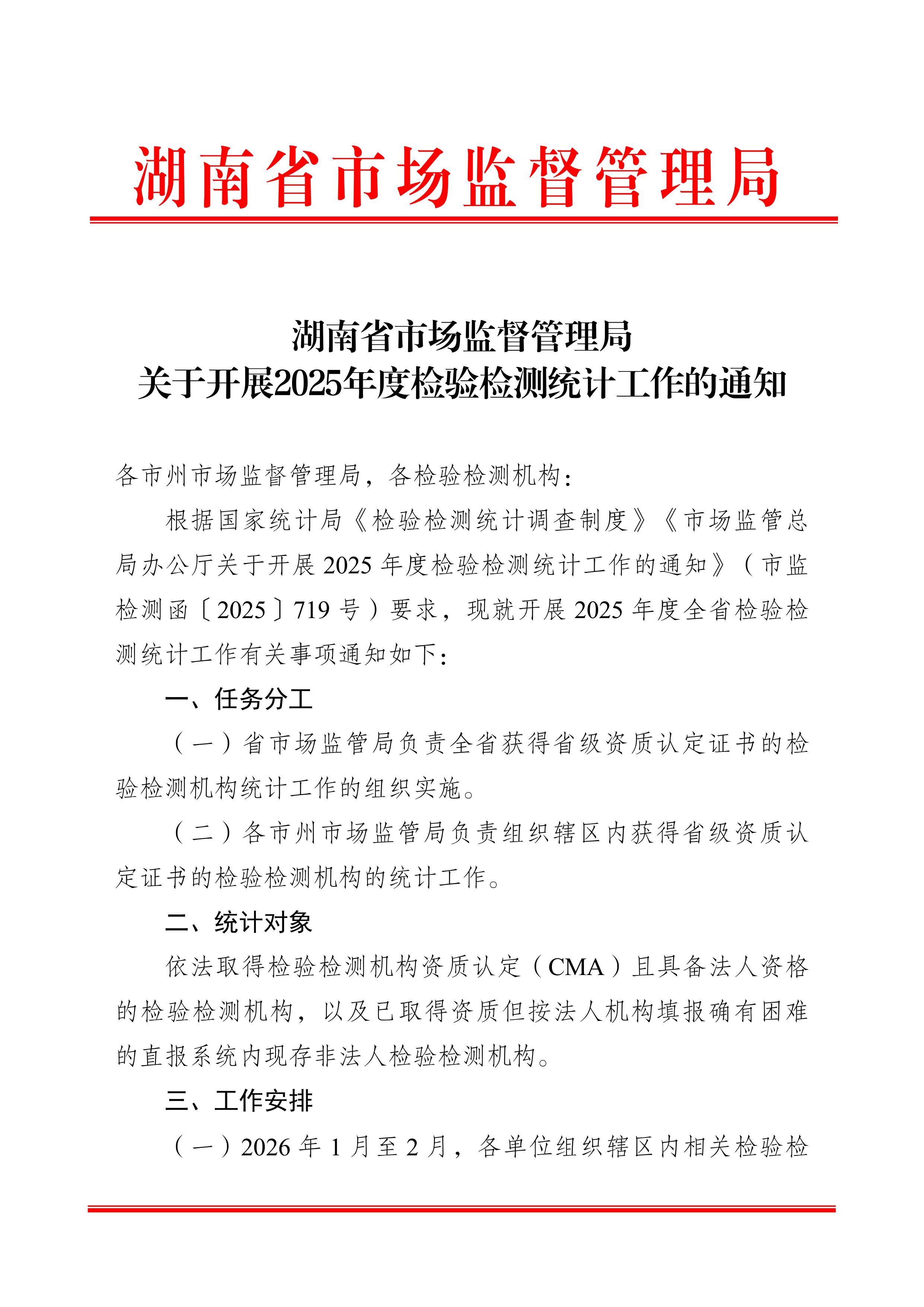 湖南省市场监督管理局关于开展2025年度检验检测统计工作的通知
