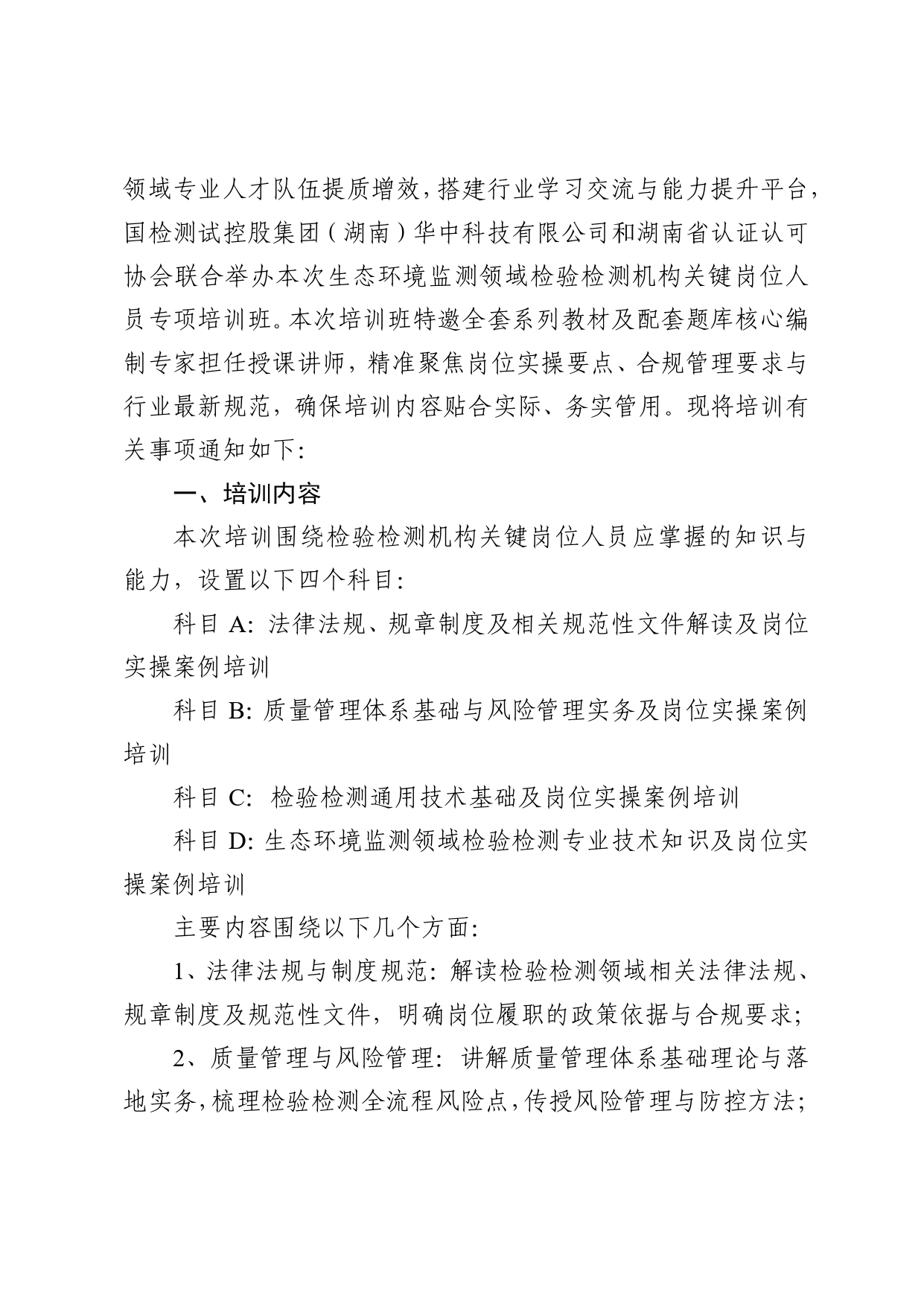 关于联合举办生态环境监测领域检验检测机构关键岗位人员培训班的通知