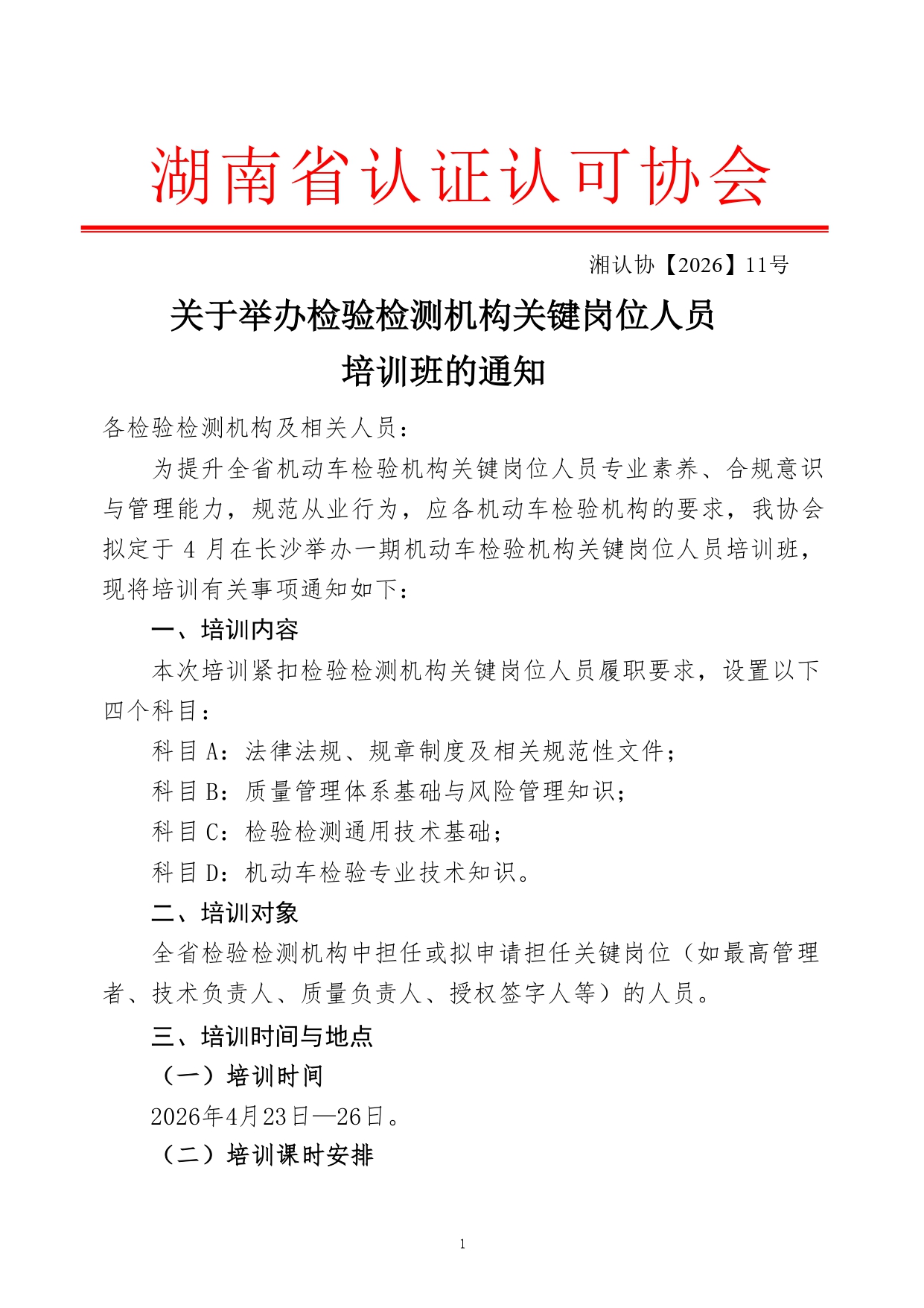 关于举办检验检测机构关键岗位人员培训班的通知(长沙)