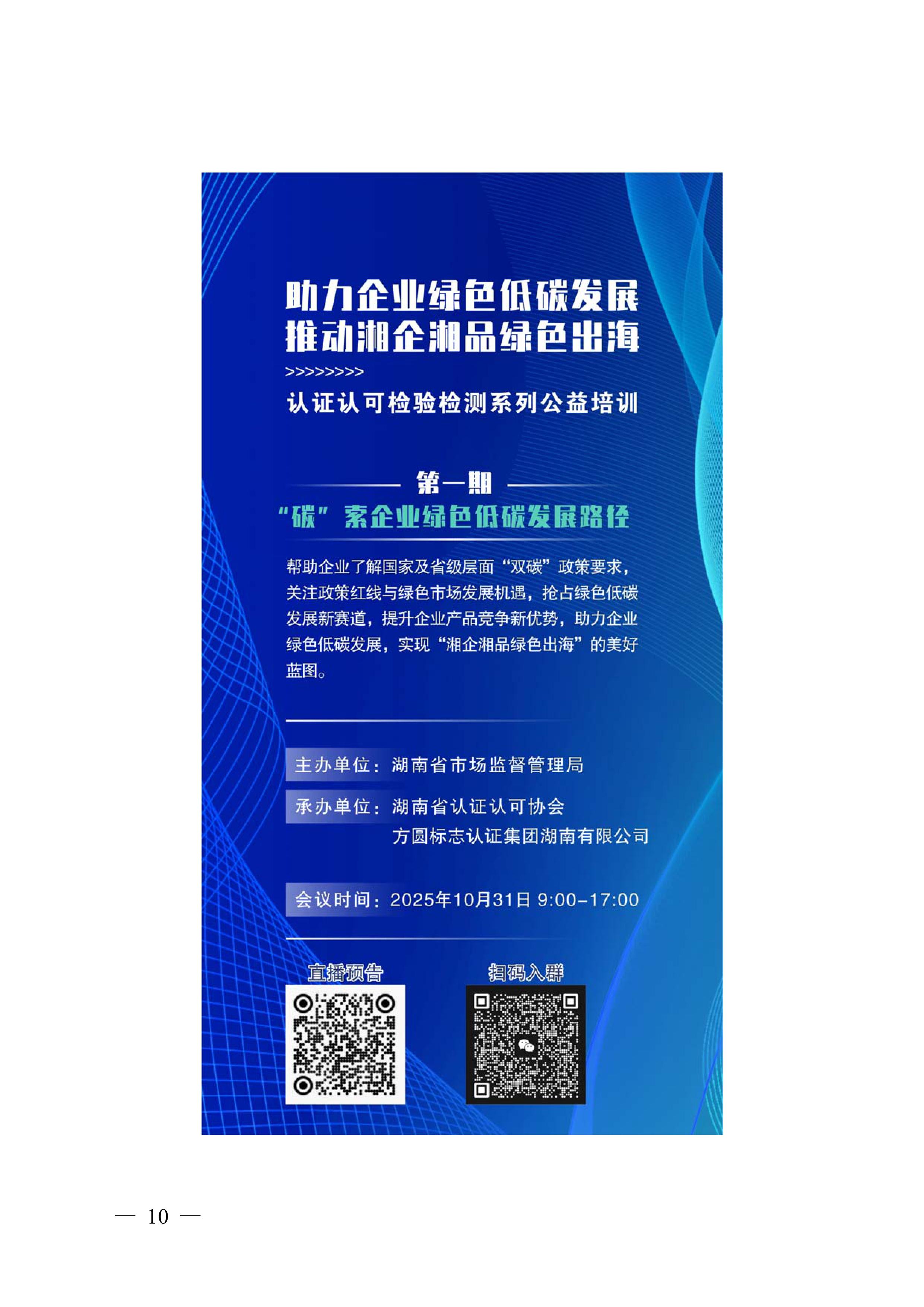 湖南省市场监督管理局 关于开展“助力企业绿色低碳发展 推动湘企 湘品绿色出海”公益培训的通知