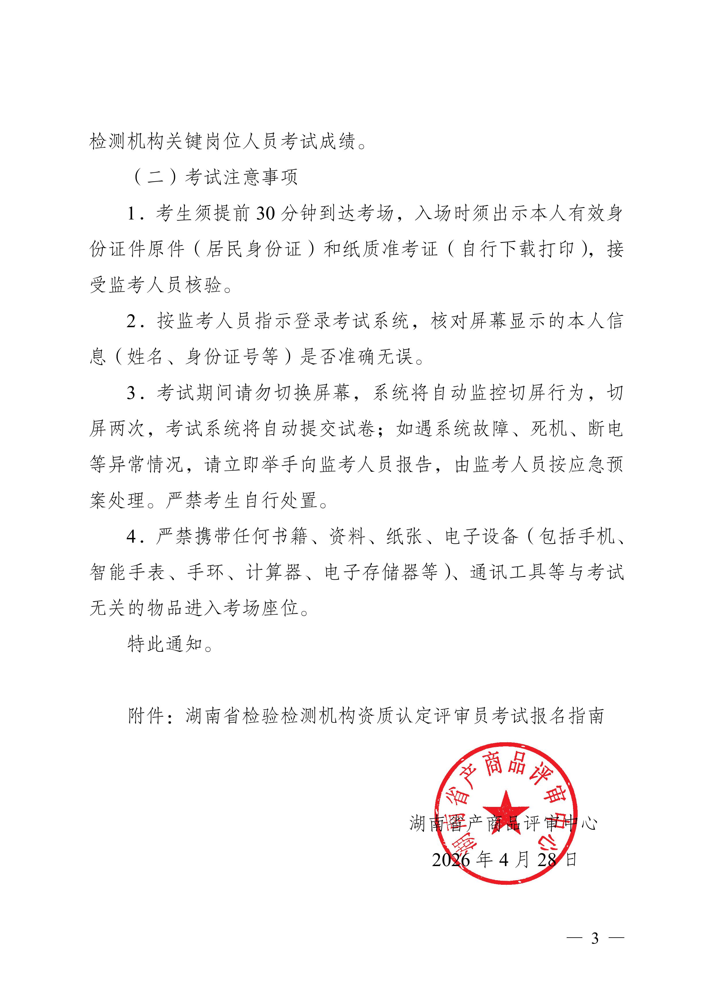 湖南省产商品评审中心关于全省检验检测机构资质认定评审员考试的通知